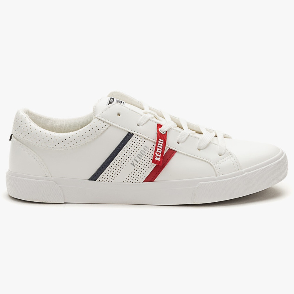 Vă prezentăm ghetele sport eleganti KEDDO pentru bărbați în alb pur. Această pereche de adidași combină perfect stilul clasic și confortul, făcându-i o alegere ideală pentru o varietate de situații de zi cu zi.