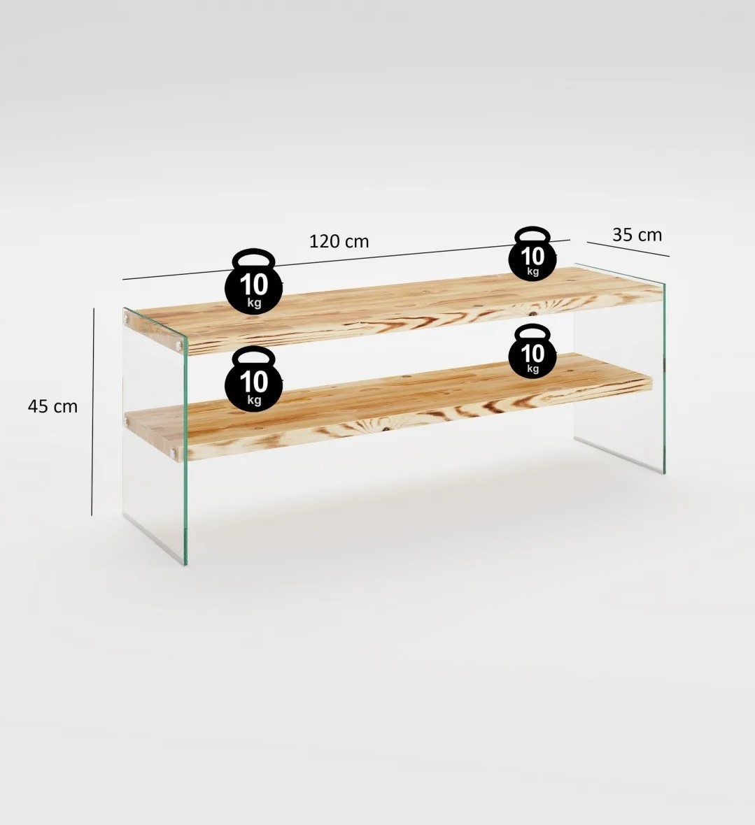 Suportul TV, cu o grosime de 8 mm, este construit pentru durabilitate. Cadrul este fabricat din sticlă călită, asigurând rezistență și siguranță. Fiecare raft suportă până la 20 kg, oferind spațiu amplu pentru toate dispozitivele media și accesorii.