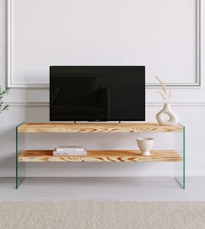 Designul suportului TV adaugă rafinament și armonie în spațiul de locuit, creând un punct focal vizual plăcut și stilat.