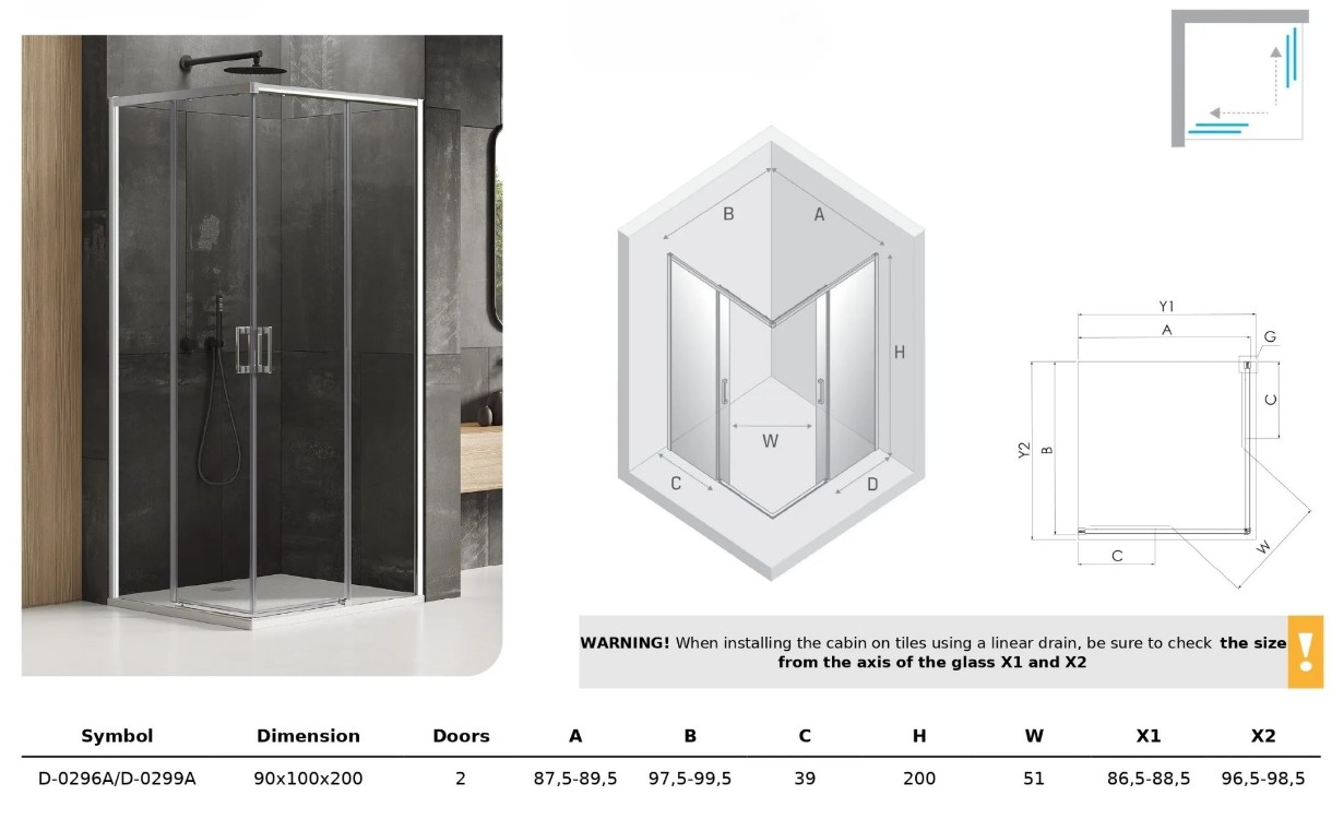 Cabină de duș New Trendy Prime D-0296A/D-0299A 90x100x200 (19525)