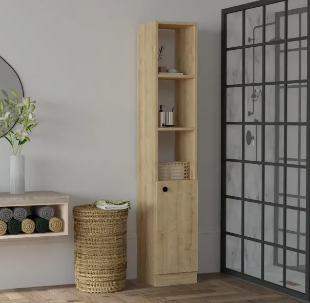 Cu numeroase rafturi, dulapul oferă suficient spațiu pentru toate obiectele esențiale. De la prosoape la articole de toaletă, totul poate fi organizat eficient, păstrând baia ordonată și funcțională.