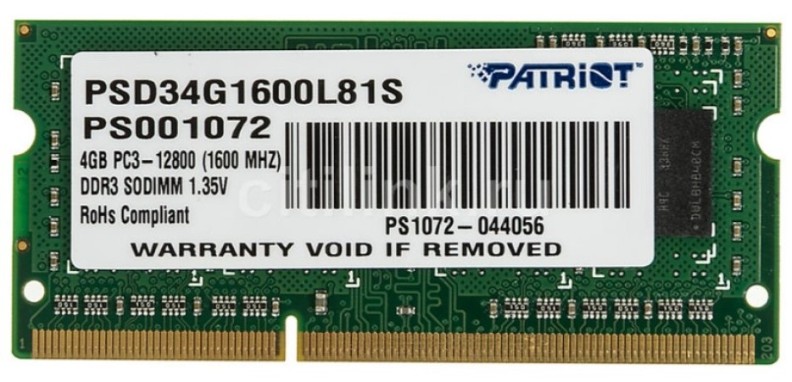 Memorie Patriot Signature Line 4Gb DDR3L-1600MHz SODIMM (PSD34G1600L81S)