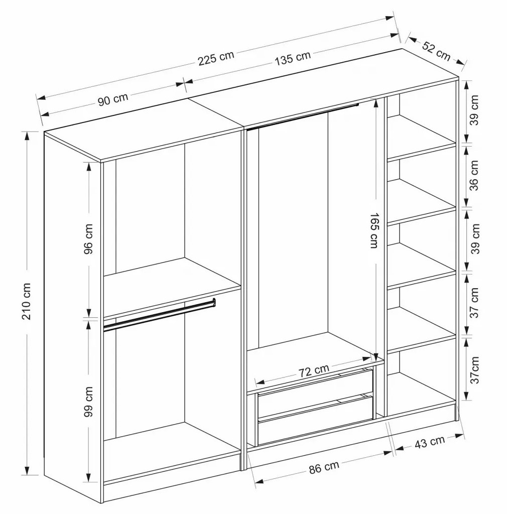 Spune adio grămezilor dezordonate de haine și salută o garderobă bine organizată. Cu numeroase rafturi, dulapul oferă spațiu amplu pentru toate lucrurile tale. De la haine și accesorii până la pantofi și genți, totul va avea locul său desemnat, permițându-ți să găsești rapid ceea ce ai nevoie.