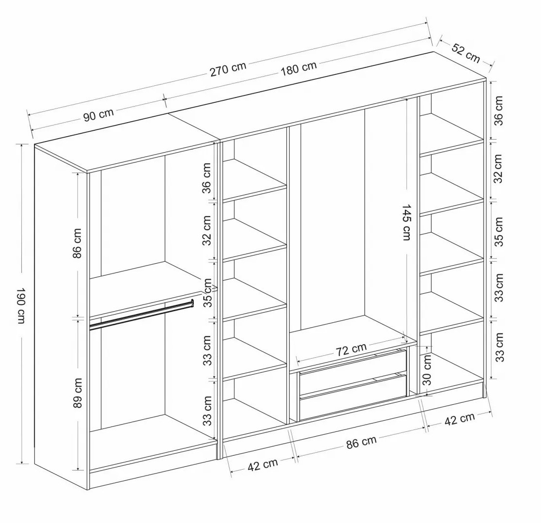 Dulap Trendy Kale 6663 White/Black 270x190x52cm GTR004645