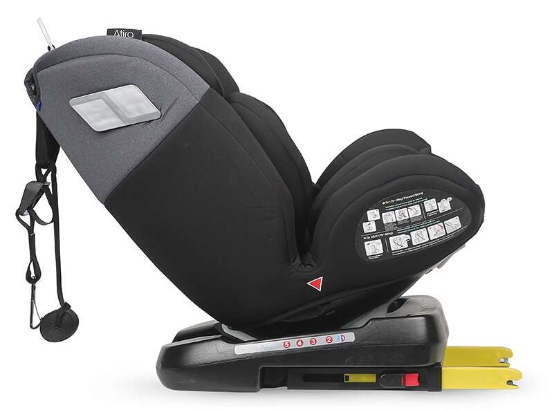 Atunci cand este fixat in sistemul isofix scaunul se roteste 360, pentru a facilita asezarea si scoaterea bebelusului din scaun. Scaunul auto Coccolle Atira are o pozitie confortabila de somn cu spatele la sensul de mers si 4 pozitii de inclinare cu fata la sensul de mers. Tetiera scaunului auto este reglabila in multiple pozitii.