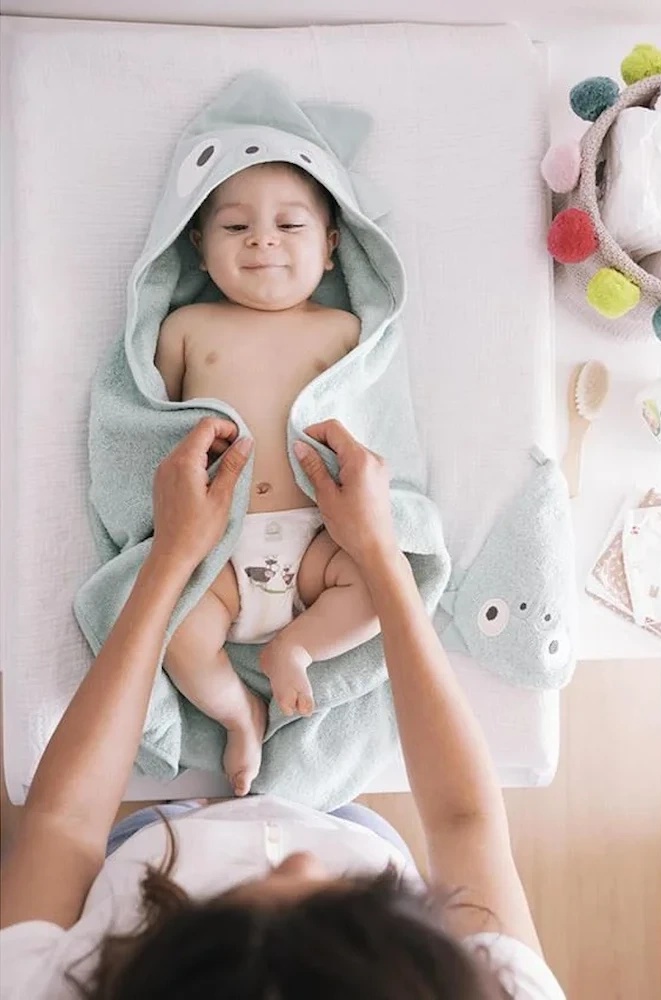 Prosopul moale și viu colorat Premaman cu design „Dino” oferă confort și bucurie copilului tău după baie, jocuri sau plimbări.