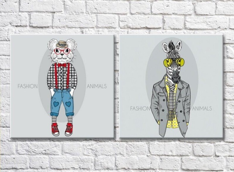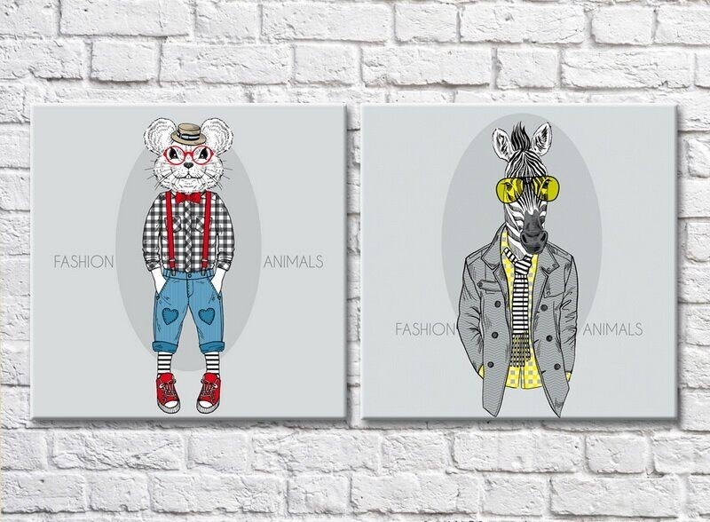 Pictură ArtPoster Zebra in fashionable glasses and a mouse in sneakers (3447724)