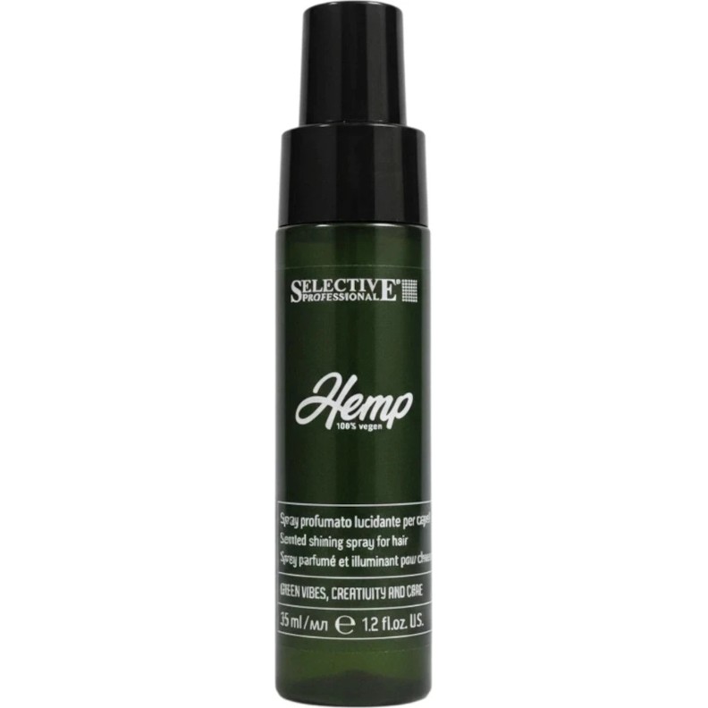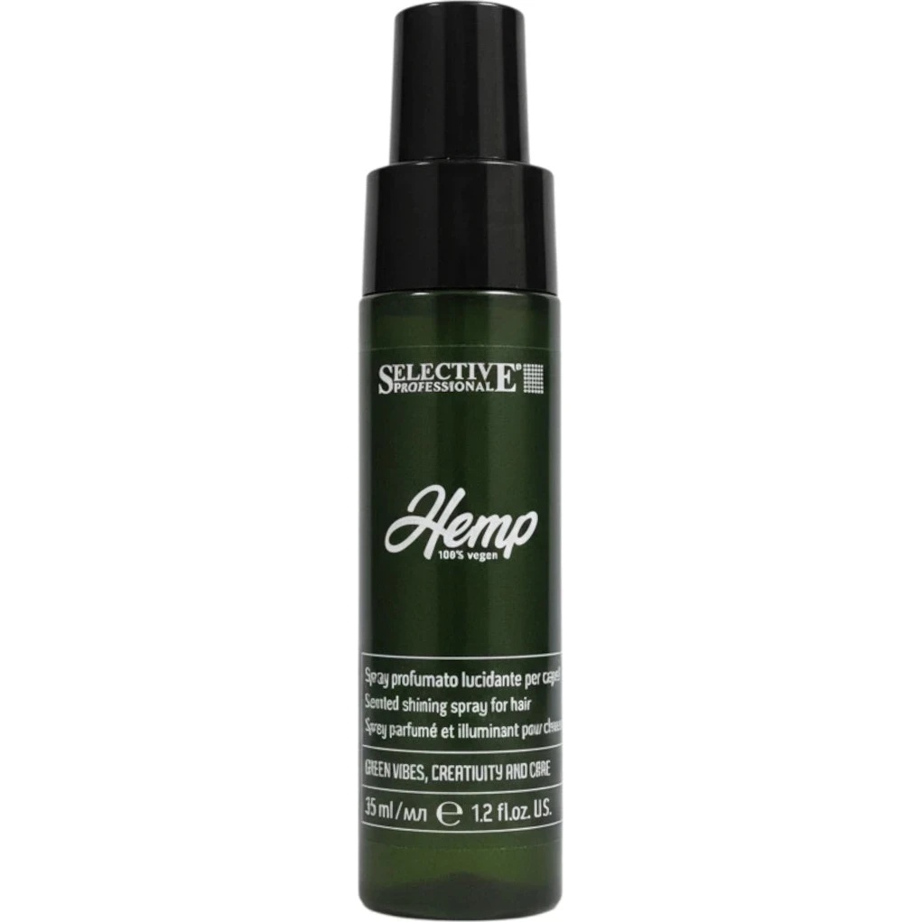 Spray pentru păr Selective Professional Hemp Hair Shine Spray 35 ml — produs ușor pentru conferirea instantanee de strălucire și moliciune părului.