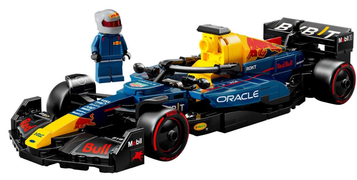 • Minifigurină F1®: Include o minifigurină pilot de F1 care poartă o uniformă Red Bull și o cască cu aripă pentru a fi plasată în cockpitul mașinii de curse F1.