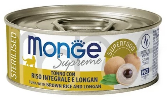 Hrană umedă pentru pisici Monge Supreme Sterilised Tuna/Rice/Longan 80g