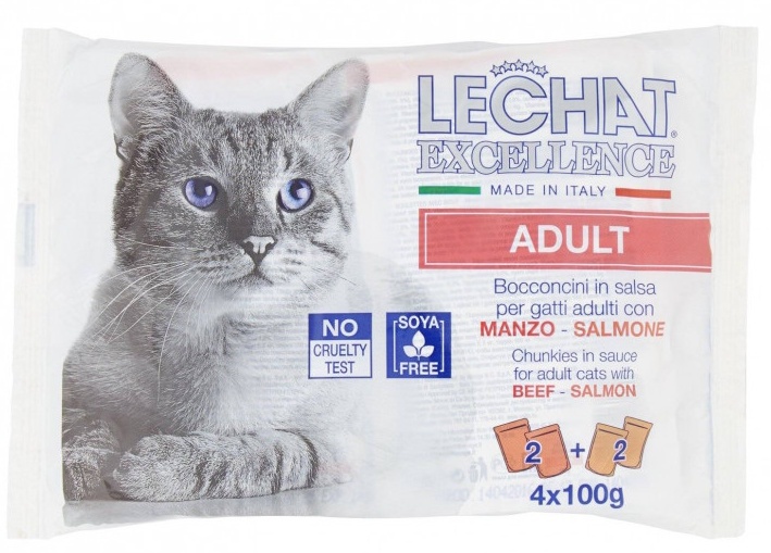 Hrană umedă pentru pisici Lechat Excellence Lechat Excellence Adult Beef/Salmon 4x100g