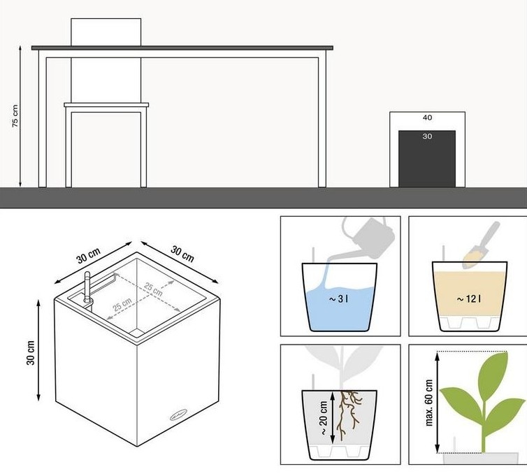 Cu CANTO Slatestone, aspectul elegant de ardezie se îmbină cu un design premiat. Cu liniile sale drepte și baza pătrată, ghiveciul este un accesoriu stilat pentru grădina sau terasa ta. CANTO a câștigat deja numeroase premii de design. Ghiveciul, disponibil în variante cub și coloană, oferă mult spațiu pentru aranjamente florale frumoase, care primesc întotdeauna cantitatea potrivită de apă datorită sistemului integrat de udare Original LECHUZA.
