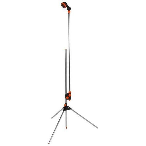 Pulverizatorul Bradas ECO-4502 este un duș de grădină pe un stativ metalic, fabricat din plastic de înaltă calitate și aluminiu. Stativul asigură o instalare stabilă chiar și pe teren moale sau denivelat, iar reglarea înălțimii permite ajustarea dușului între 150 și 210 cm. Intensitatea fluxului de apă și unghiul capului de duș se pot regla individual, oferind o distribuție precisă și confortabilă a apei. Dușul are trei moduri de pulverizare: „Duș” pentru udarea delicată, „Centru” pentru un jet concentrat și „Complet” pentru acoperire uniformă. Este ideal pentru udarea grădinii, a paturilor de flori și a peluzelor, precum și pentru răcorire în zilele călduroase.