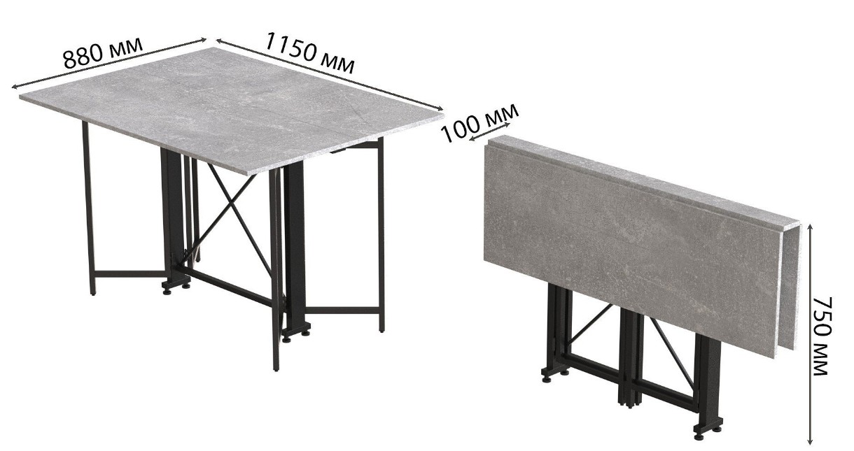 Masă pentru bucătărie Ferrum-Decor Spider 75x115x88 Beton/Black (SPAR007)