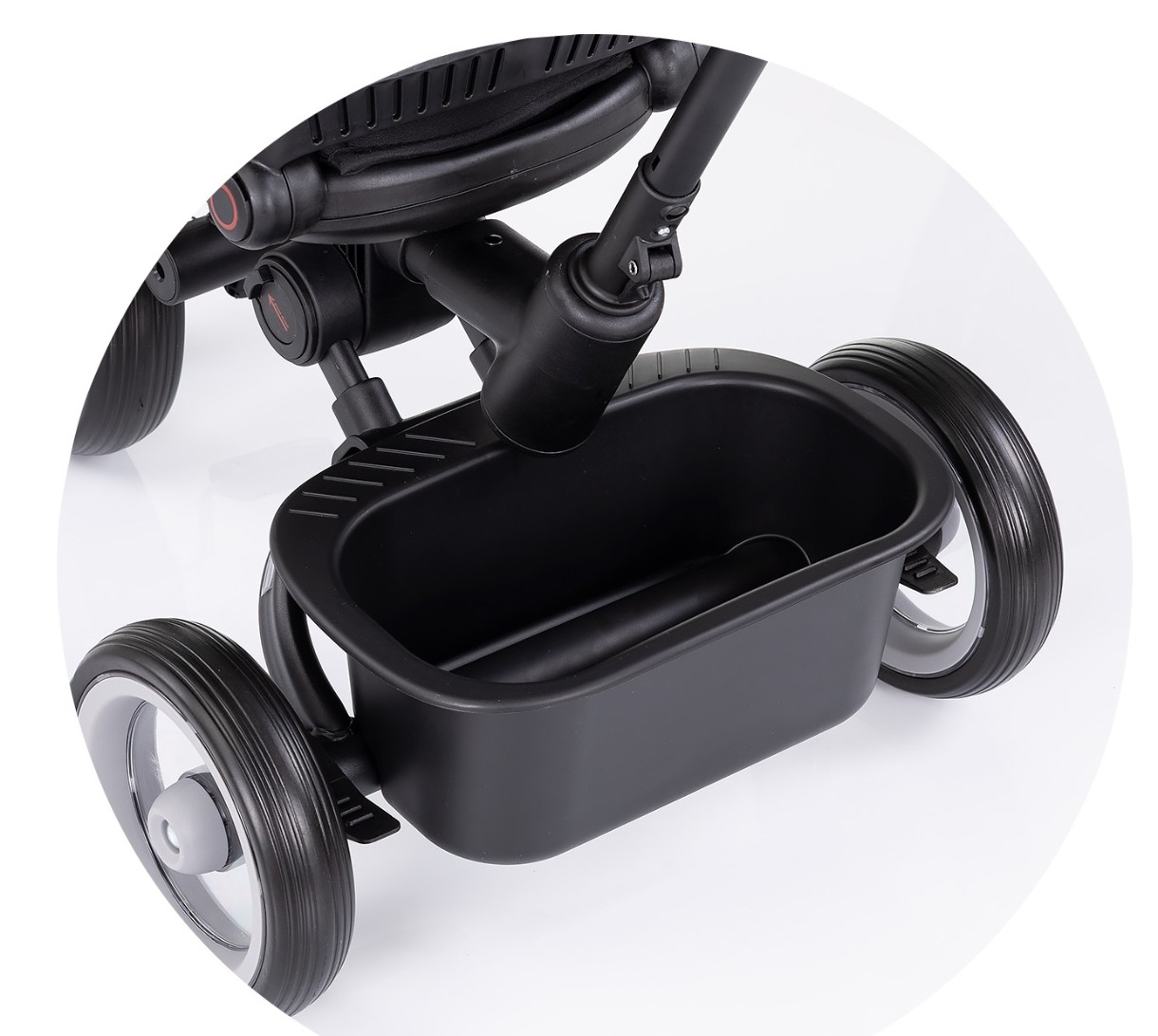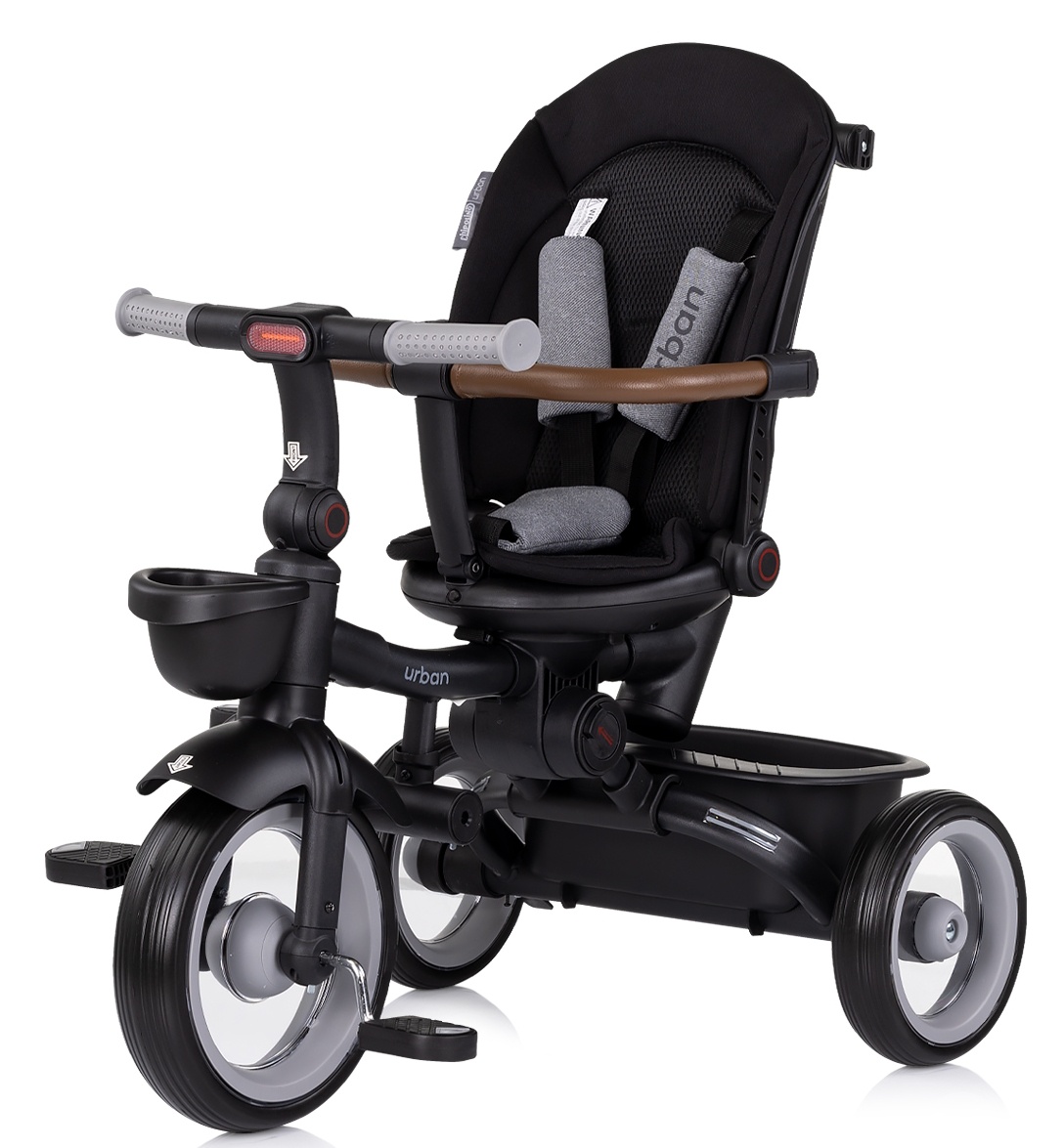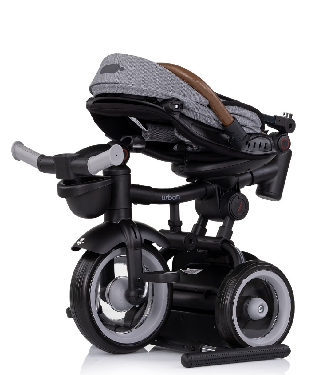 - Scaunul se rotește la 360° - poate fi utilizat atât în direcția de mers (în direcția de mers), cât și în direcția de mers (cu fața spre tricicletă);