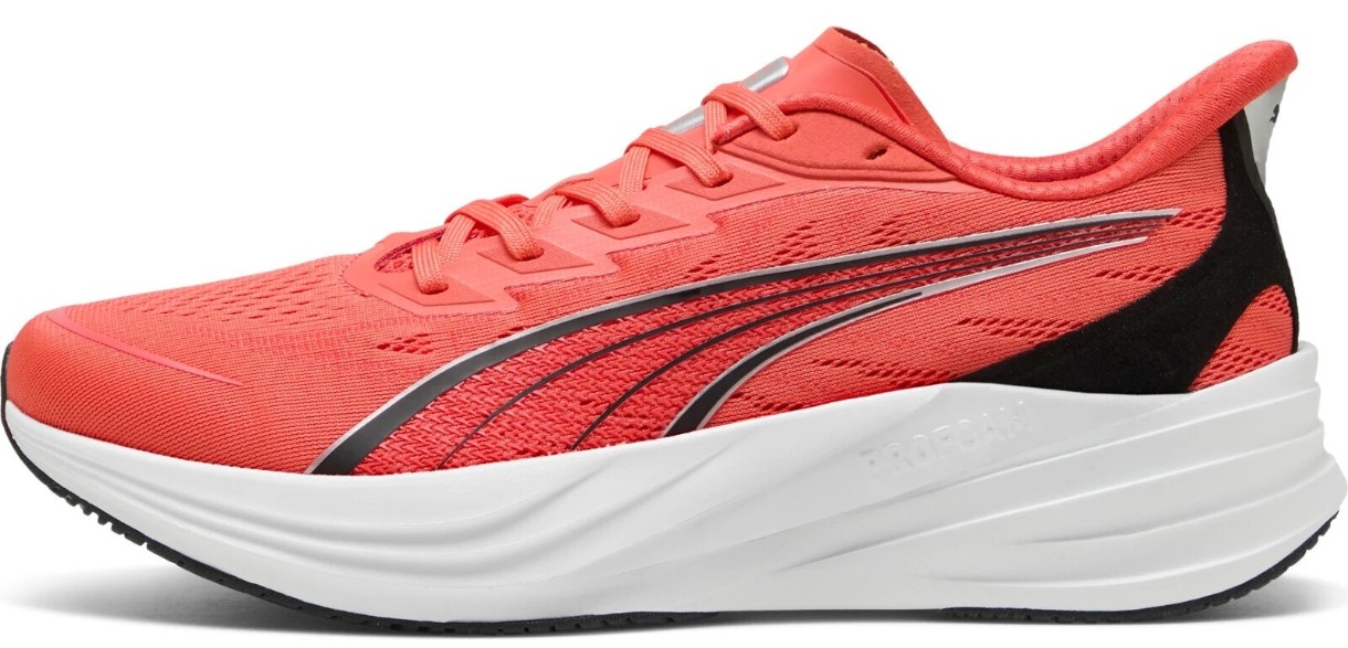 Puma Darter Pro 2 sunt adidași de alergare creați pentru cei care apreciază viteza, ușurința și stabilitatea pe asfalt. Modelul este conceput pentru antrenamente pe șosea și este potrivit pentru alergători cu pronație neutră. Partea superioară din plasă, cu inserții sintetice, permite o bună ventilație și fixează sigur piciorul, fără a îngreuna construcția. Întăritura din zona călcâiului ajută la menținerea stabilității la fiecare pas, iar gulerul jos nu limitează mișcarea.