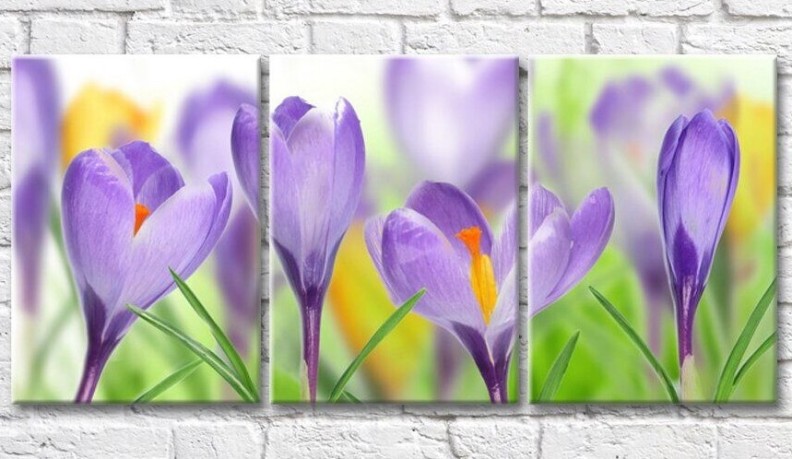 Pictură Gallerix Flower bed with purple and yellow crocuses (500807)