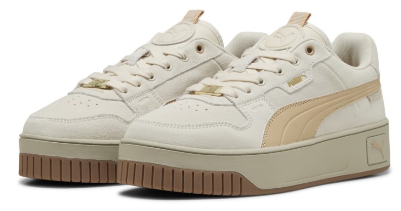 Ghete pentru dame Puma Carina Street Lux Suede Alpine Snow/Light Sand/Puma Gold, s.41