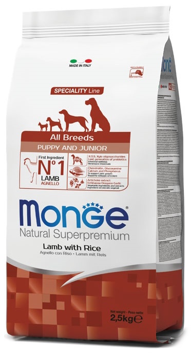 Hrană uscată pentru câini Monge Superpremium All Breeds Puppy & Junior Lamb/Rice 2.5kg