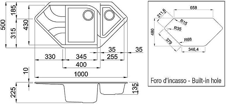 Adâncime cuvă225 mm