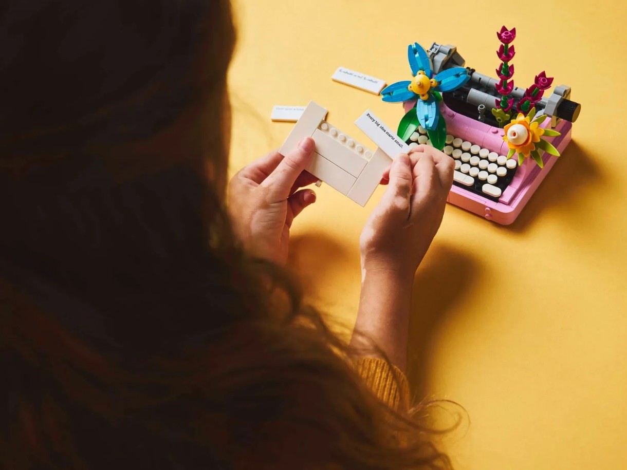 Fanii LEGO au de ales între 3 seturi diferite de construit cu flori: o mașină de scris cu o jucărie cu flori; un instrument muzical keytar pe un suport pentru flori; sau un ghiveci cu flori cu un pix și un blocnotes. Setul de construcție include și 3 autocolante cu fraze interesante pe care copiii le pot folosi pentru a decora modelele construite din cărămizi.