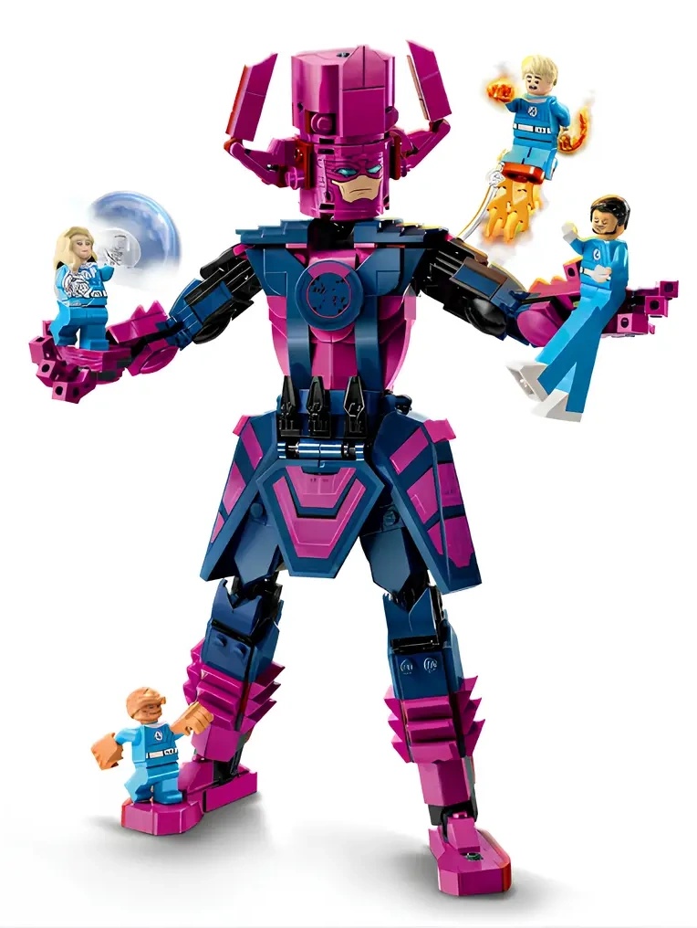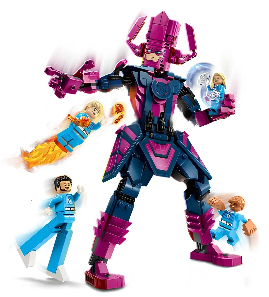 Setul LEGO ǀ Marvel Fantastic Four include 4 minifigurine: Domnul Fantastic cu picioare extensibile; Torța Umană cu 2 explozoare manuale și elemente de flacără atașate de picioare, plus un suport transparent care îi permite să „zboare”; Femeia Invizibilă care ține 2 scuturi de forță; și Lucrul cu brațele sale mari și puternice. Personajul negativ emblematic din filme, Galactus, are o înălțime de peste 28 cm atunci când este complet construit. Această figurină construibilă inspiră acțiune nesfârșită în timp ce luptă cu supereroii. Pentru mai multă distracție, constructorii pot mări imaginea, roti modelele în 3D și le pot urmări progresul folosind aplicația distractivă și intuitivă LEGO Builder. Acest set include 427 de piese.