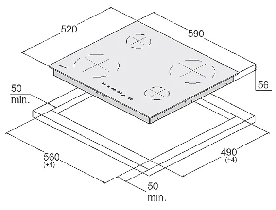 Dimensiuni plita (ÎxLxA)5.6x59x52 cm
