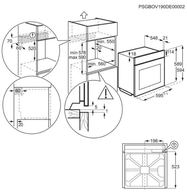 Măsuri de incorporare59x56x55 cm