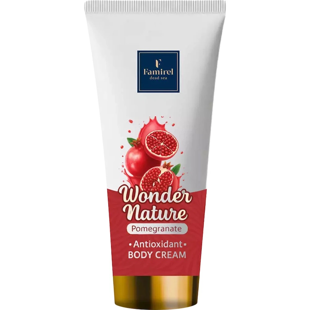 Cremă pentru corp Famirel Wonder Nature: Pomegranate 180 ml — o cremă hidratantă și nutritivă cu extract de rodie, destinată îngrijirii zilnice a pielii. Textura sa ușoară se absoarbe rapid, oferind pielii catifelare și prospețime.