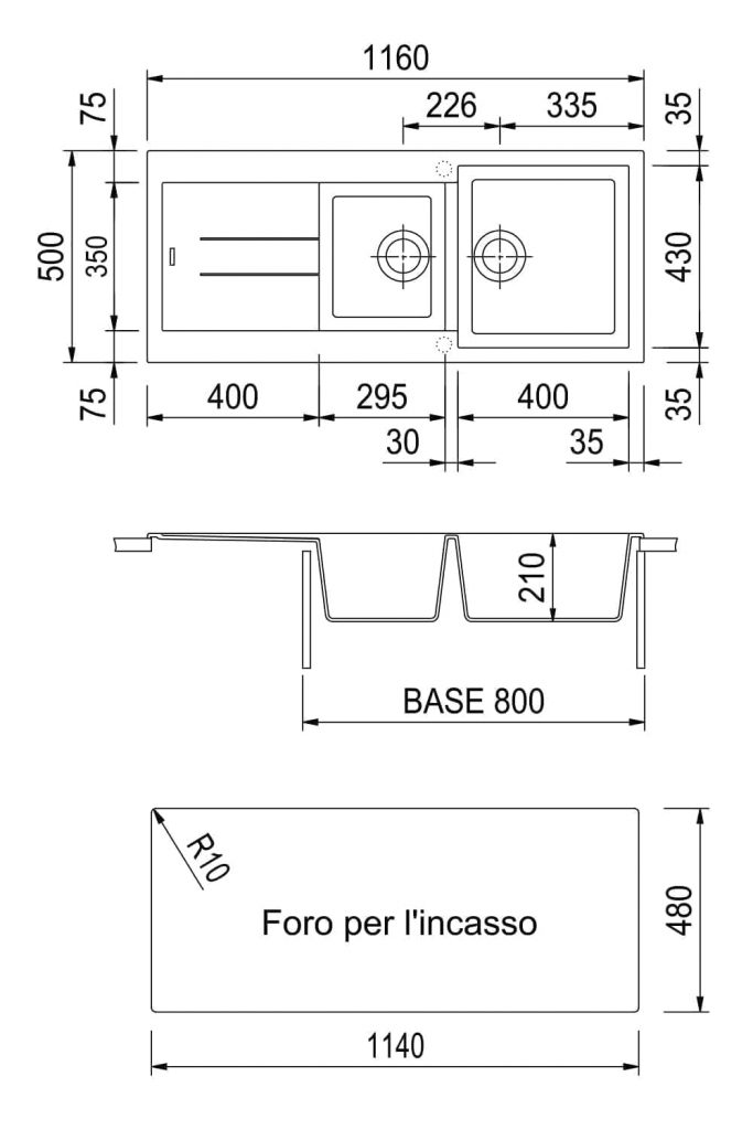 Adâncime cuvă210 mm