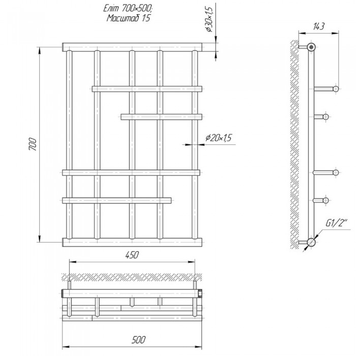 Uscător de prosoape Perfetto Elite 730х500x700