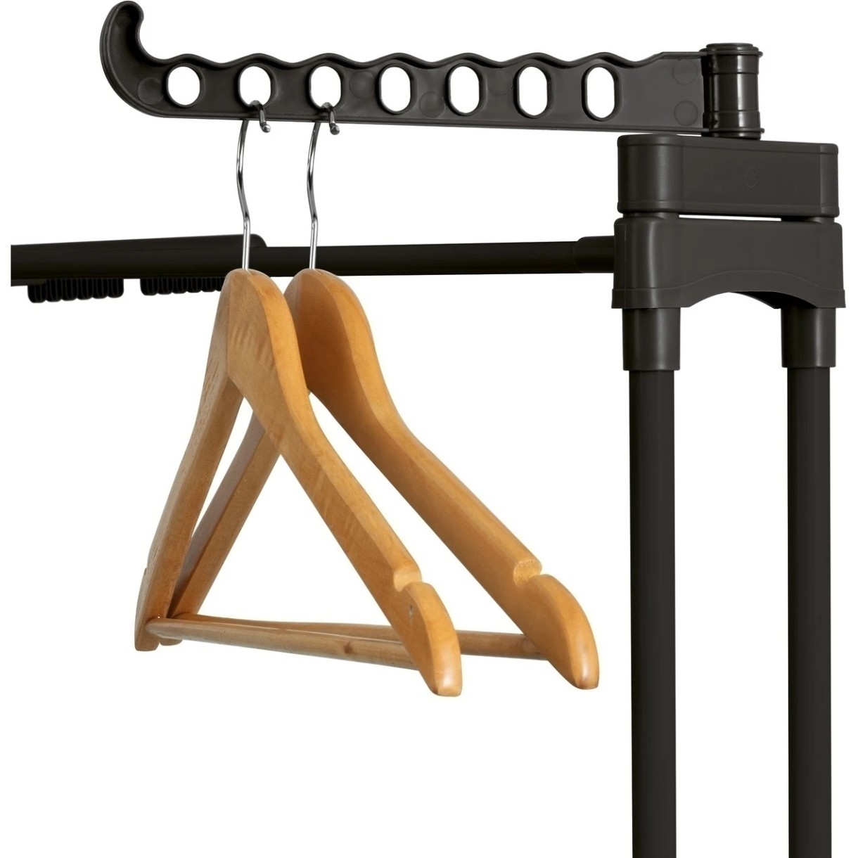 Uscătorul vertical de rufe Konighoffer Ultra poate fi utilizat și pentru uscarea hainelor pe umerașe. Distanța dintre niveluri și tuburi este suficient de mare pentru a asigura condiții bune pentru uscarea eficientă a tuturor hainelor și chiar a lenjeriei de pat. Culoarea sa neagră se datorează acoperirii cu pulbere.