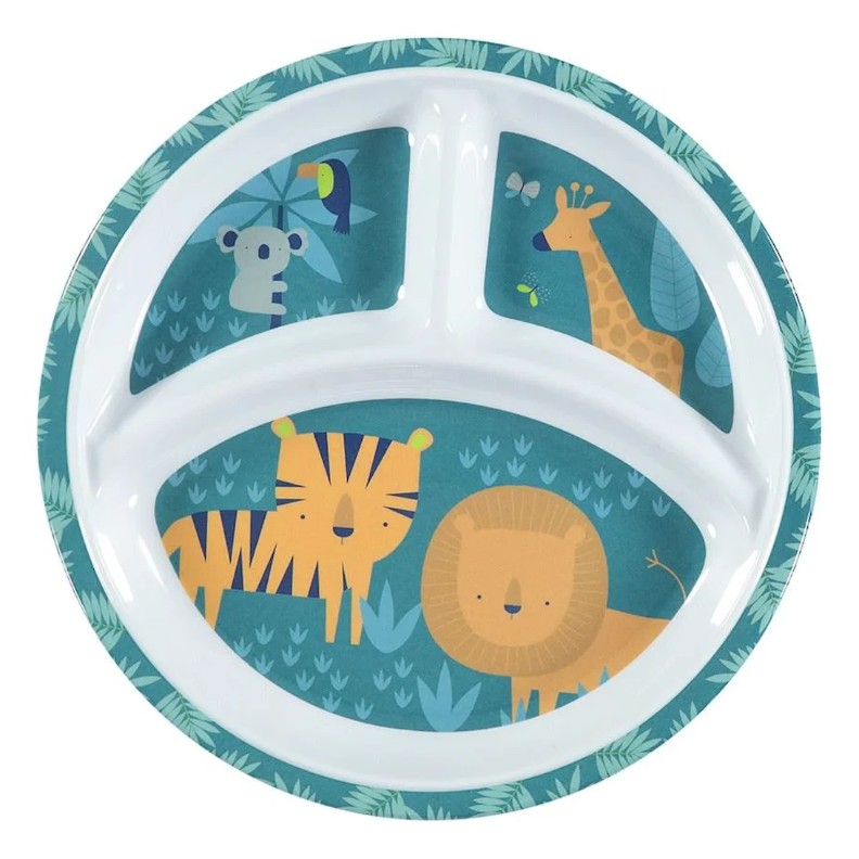 Transformați fiecare masă într-o aventură plină de culoare cu farfuria compartimentată din colecția Crazy Jungle! Designul vesel, inspirat din lumea junglei, face ca momentul mesei să fie mai distractiv și mai atractiv pentru cei mici.