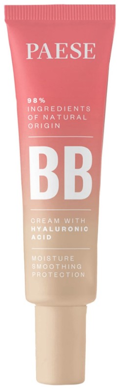 Paese BB Cream with Hyaluronic Acid — cremă BB cu acid hialuronic. Formula sa este 98% naturală, cu textură ușoară și mătăsoasă. Crema se adaptează tonului natural al pielii și îl uniformizează fără a crea efect de mască, lăsând tenul proaspăt și neted.
