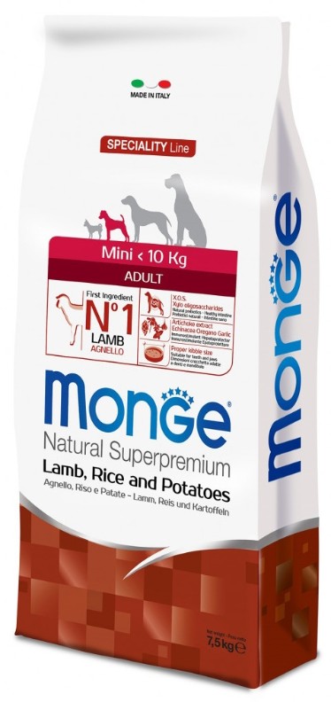 Hrană uscată pentru câini Monge Superpremium Mini Adult Lamb/Rice/Potatoes 7.5kg