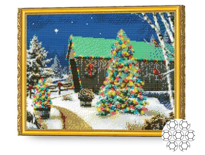 Pictura cu diamante după numere Art Gallery Premium Brad împodobit în curte GA74415