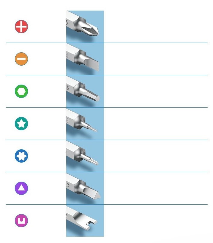 Tip de bițiT3, T10, T15, T20, PH1, PH1.5, PH2, PH2.5, PH3.5