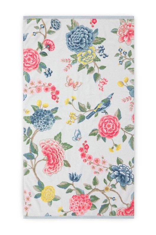 Prosoapele Good Evening sunt decorate cu flori orientale pictate delicat. O pasăre și un fluture zboară printre flori. Prosoapele au o bordură cu dungi. Prosoapele sunt fabricate din velur 100% bumbac de înaltă calitate, cu o densitate de 500 g/m2. Acest lucru le face foarte moi și le conferă, de asemenea, calități excelente de absorbție a umidității, respirabilitate și uscare rapidă. Prosoapele au o bordură cu dungi și o buclă practică.