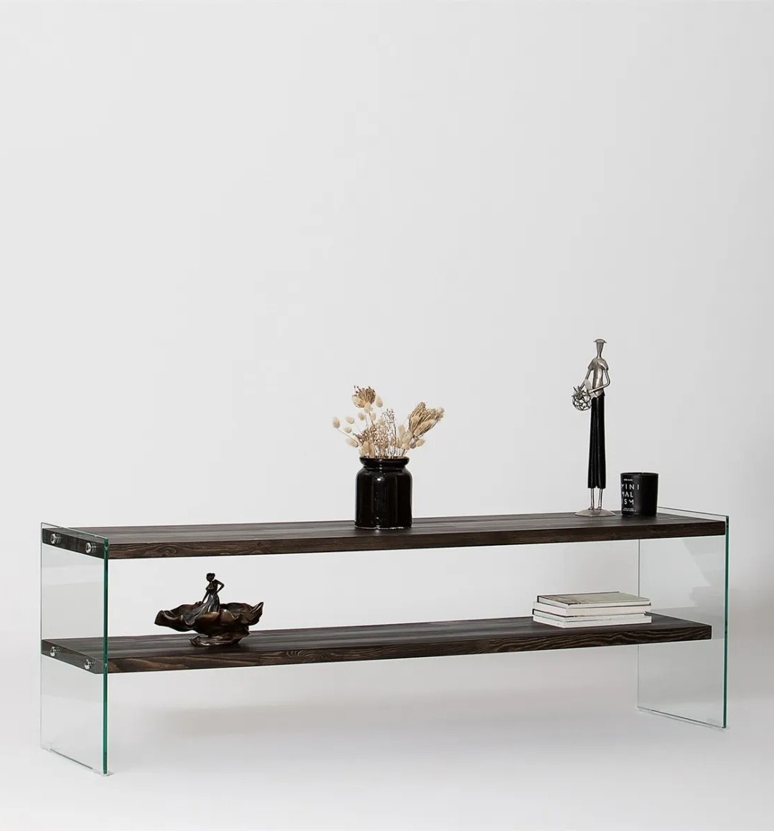 Construit cu un cadru din lemn masiv 100%, suportul de televizor oferă durabilitate și stabilitate excepționale, promițând ani de utilizare fiabilă. Designul elegant și modern este completat de sticla temperată 100%, care adaugă un aspect luxos și pune în valoare orice încăpere.