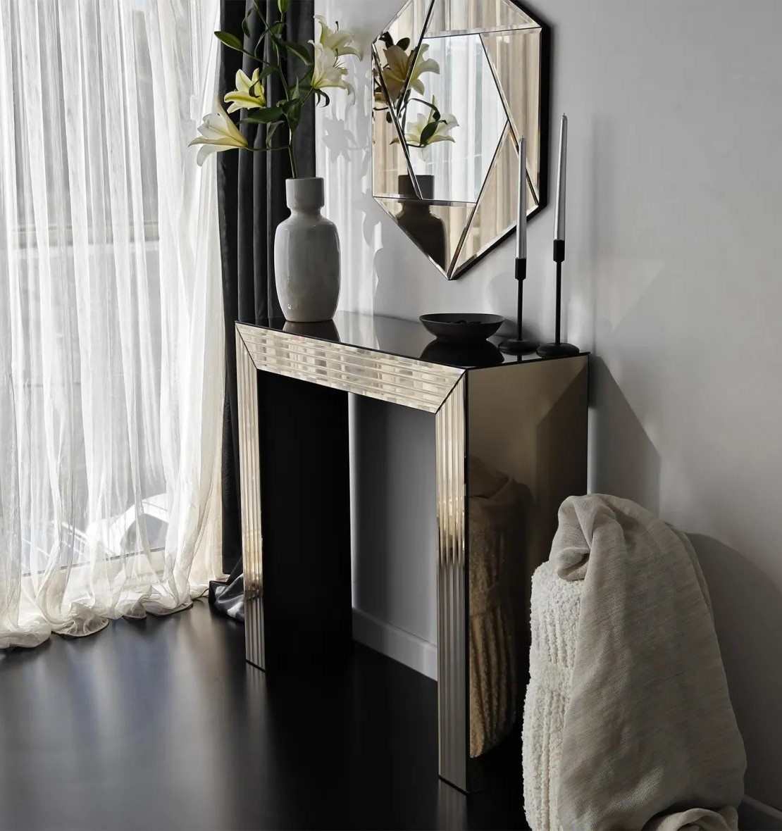 Designul minimalist include o singură poliță, perfectă pentru organizarea obiectelor esențiale sau pentru a expune decoruri. Finisajul neted și atent lucrat asigură un aspect modern și rafinat, potrivit pentru dormitor sau living.