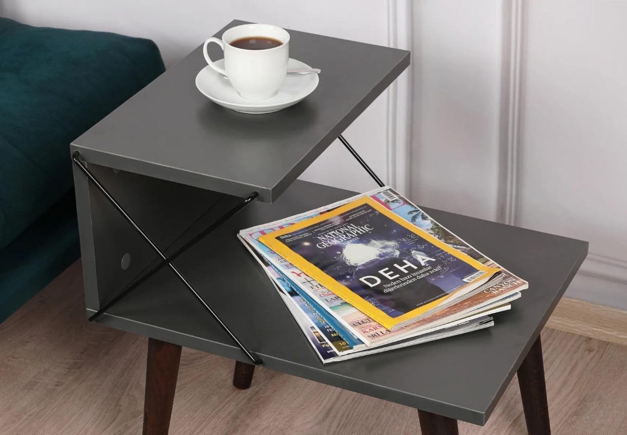 Cu numeroase rafturi, această noptieră oferă spațiu de depozitare amplu pentru păstrarea lucrurilor esențiale organizate și la îndemână. Raftul de jos, cu o lungime de 50 cm, oferă suficient spațiu pentru obiecte mai mari, iar raftul de sus, cu o lungime de 25 cm, este potrivit pentru obiecte mai mici sau piese decorative.