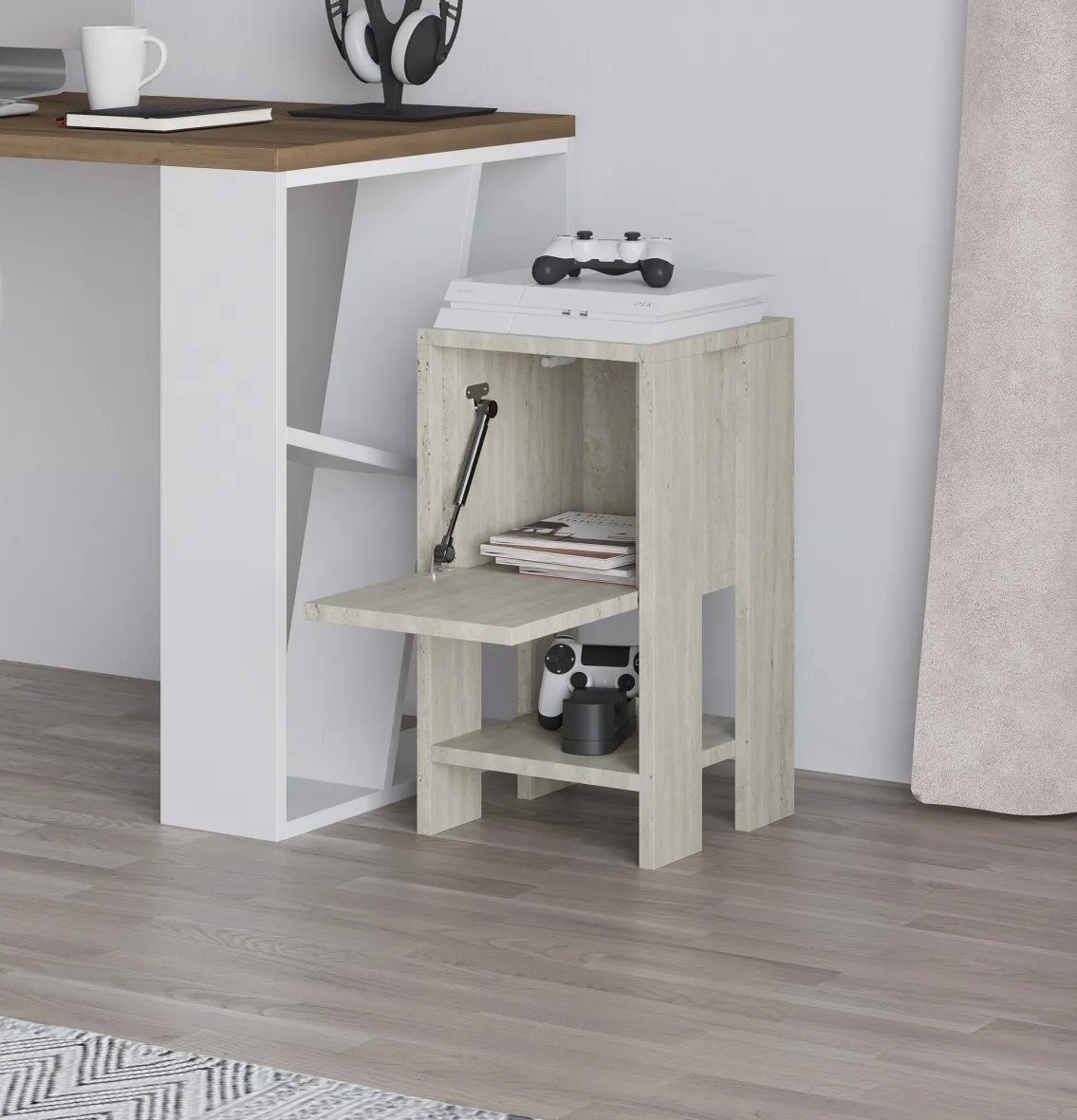 Dispunând de un sertar pivotant spațios, noptiera oferă un spațiu amplu de depozitare pentru lucrurile esențiale. Dimensiunea sertarului de 30 cm lățime, 27 cm înălțime și 30 cm adâncime permite organizarea ordonată a obiectelor, păstrând noptiera fără dezordine.