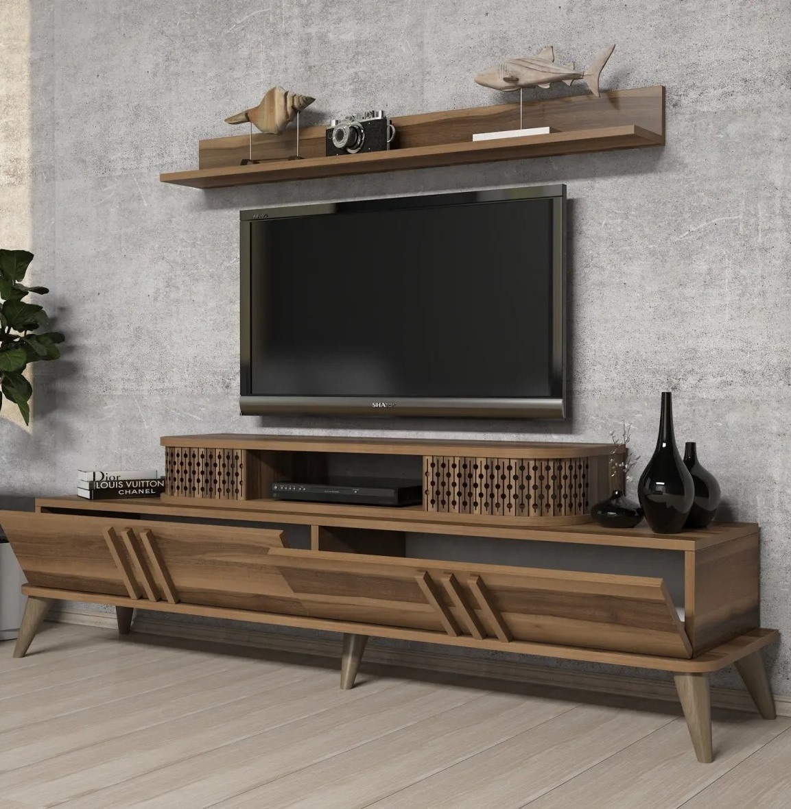 Această unitate TV se integrează cu ușurință într-o gamă variată de stiluri interioare, de la modern la tradițional. Poate deveni un element de accent al camerei, punând în valoare decorul și contribuind la o atmosferă caldă și primitoare.