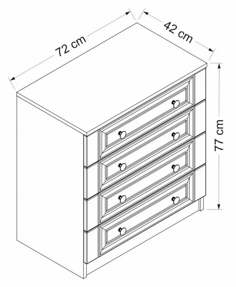Comodul este fabricat din panouri de particule de lemn acoperite cu melamină, asigurând durabilitate excepțională, rezistență la zgârieturi, pete și uzura zilnică. Aceasta va păstra starea impecabilă pentru mulți ani.