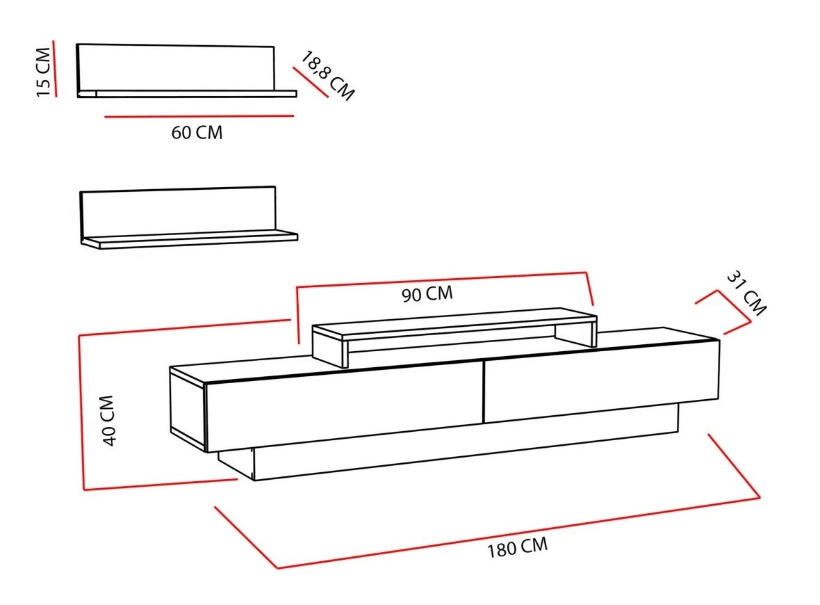 Alteleinclude două rafturi de perete: 60х15х18.8