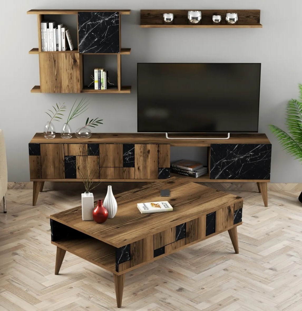Living Trendy Madrid Walnut/Black Marble GTR001283