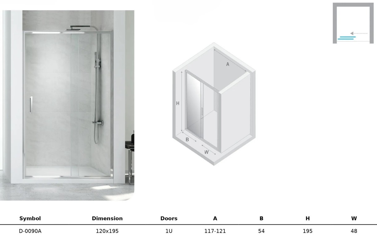 Ușă de duș New Trendy New Corina D-0090A 120x195x6mm (12780)