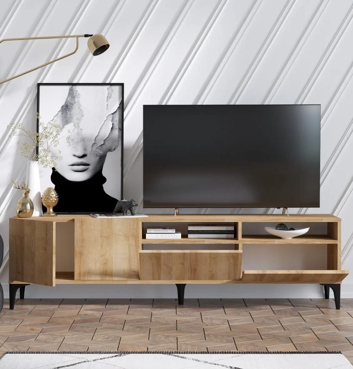 Comodă TV Trendy Ross Oak/Black 180x52x35cm GTR006393