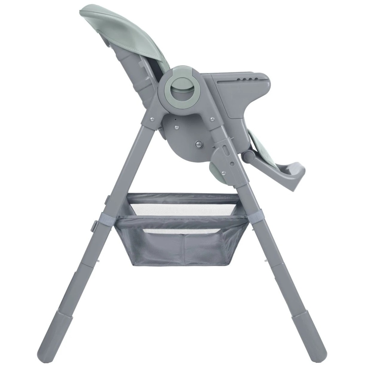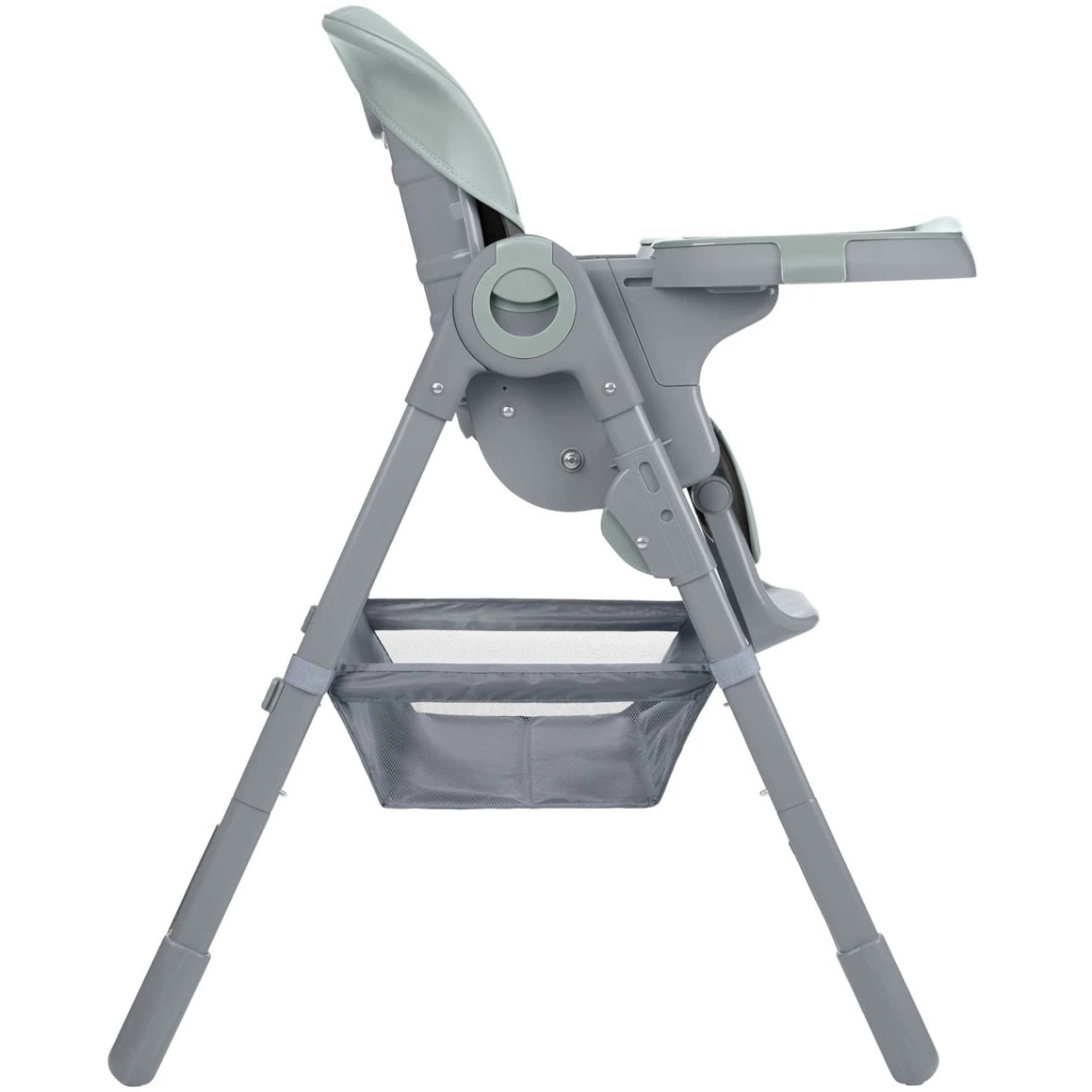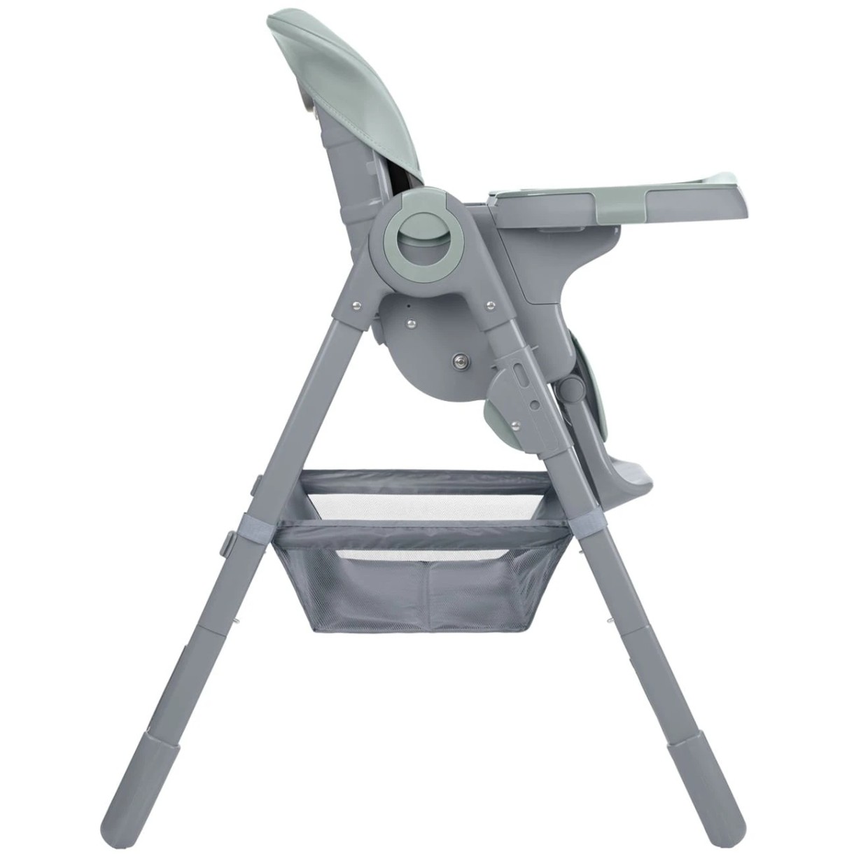 - Un coș de depozitare util situat sub scaun oferă locul perfect pentru a depozita jucării, bavețici sau accesorii de hrănire, păstrând esențialele la îndemână în timpul meselor.