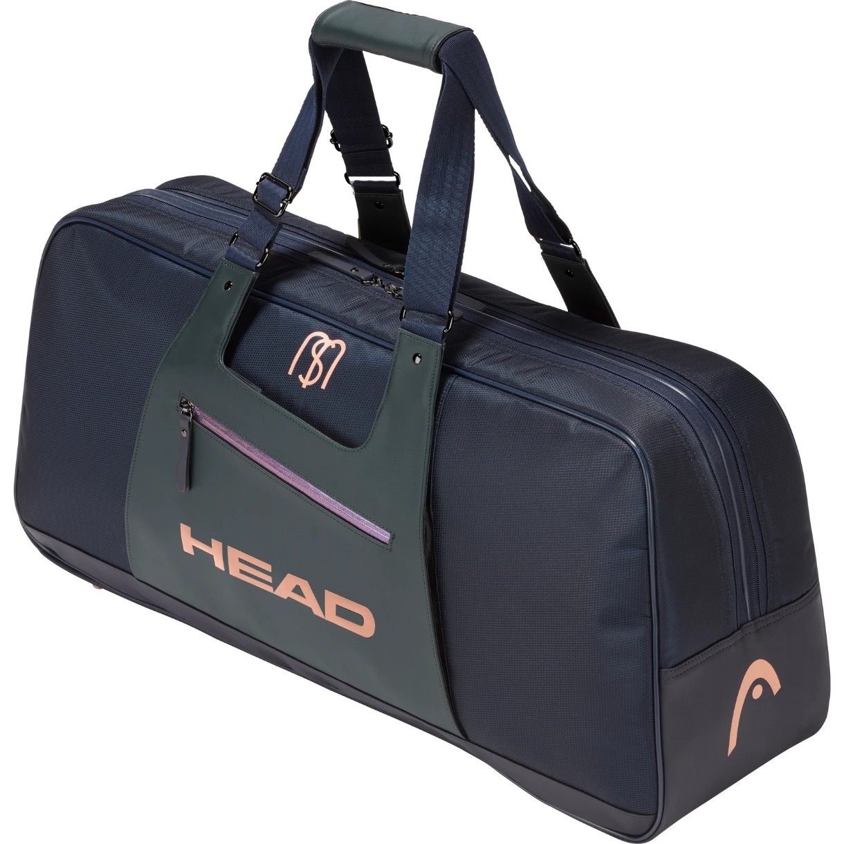 Geanta Head Sharapova Court Bag este creată pentru jucătorii de tenis care apreciază stilul, funcționalitatea și confortul la transportul echipamentului. Are un design compact, dar suficient de încăpător pentru a depozita rachetele, încălțămintea, hainele și accesoriile necesare pentru antrenament sau meci.